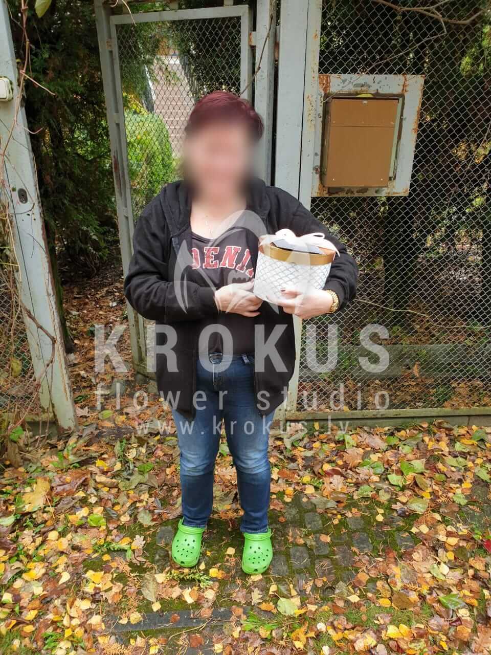 Mēs piegādājām vēl vienu pasūtījumu uz pilsētu Rīga. Pasūtītājs vēlējās: Ziedu piegāde Flowerbox ar makarūniem (macaron) (Izmērs: