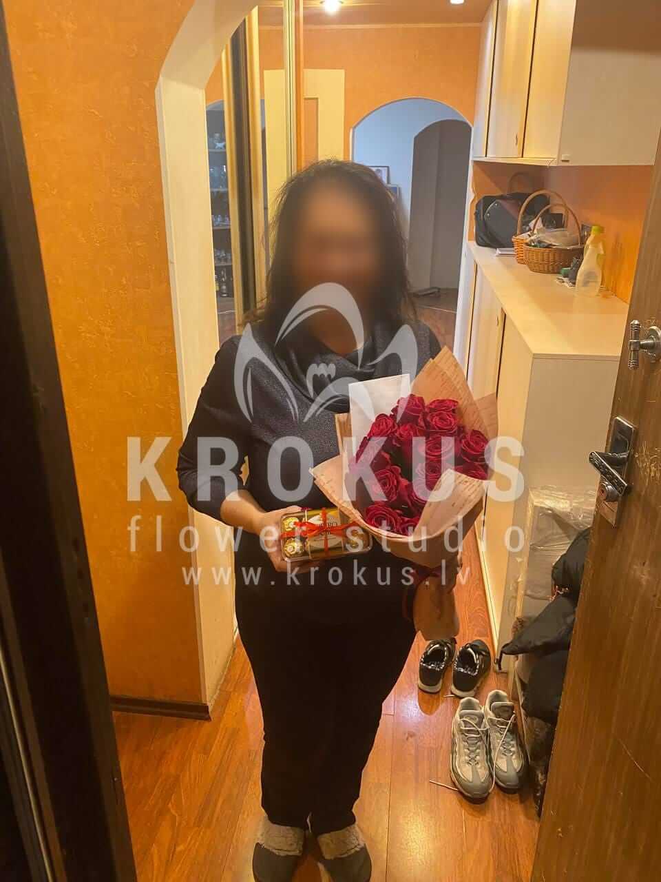 Mēs piegādājām vēl vienu pasūtījumu uz pilsētu Rīga. Pasūtītājs vēlējās: Ziedu piegāde Sarkana roze XXL 70cm. Ziedu piegāde Ferrero Rocher 200g