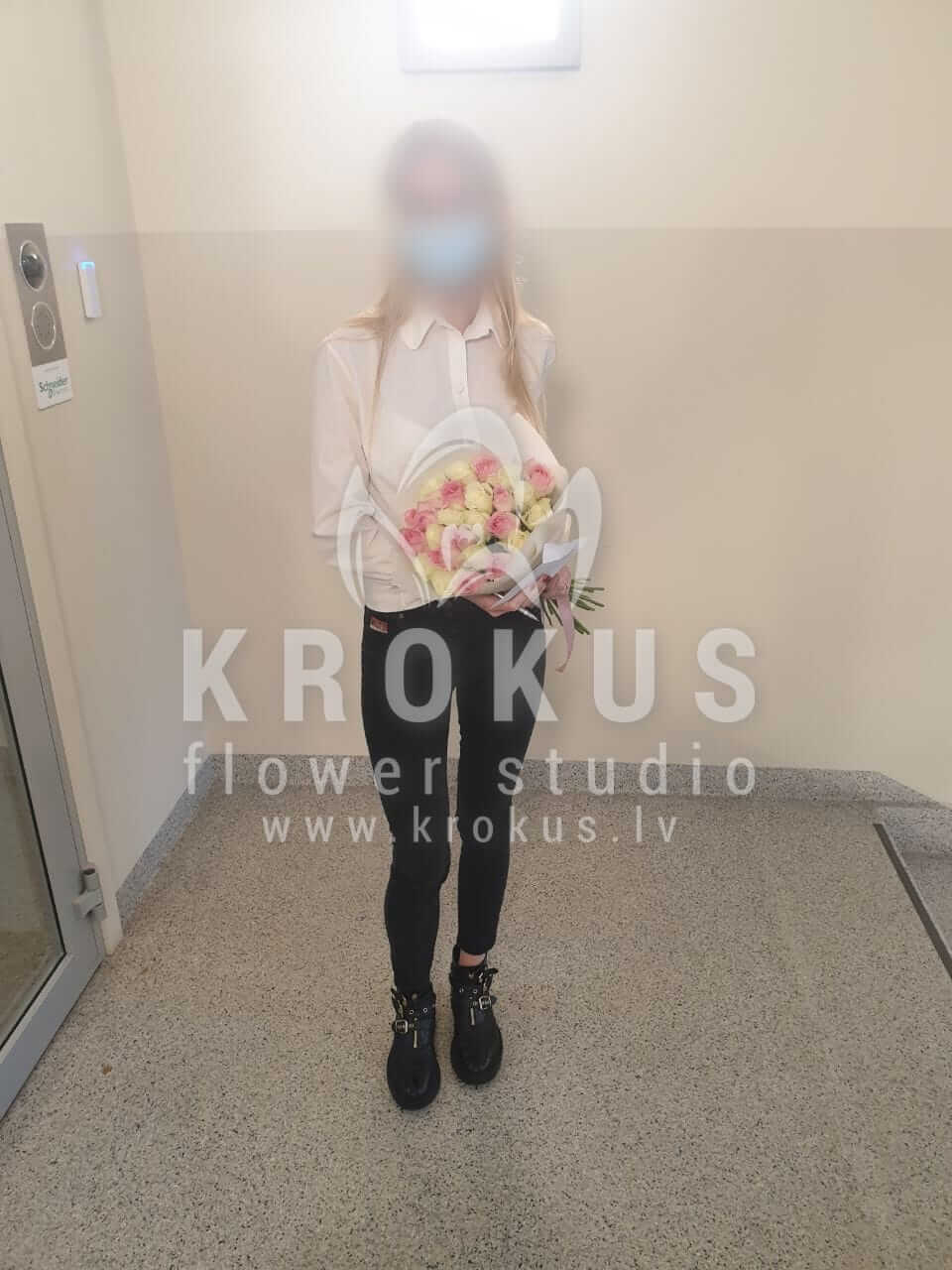 Mēs piegādājām vēl vienu pasūtījumu uz pilsētu Rīga. Pasūtītājs vēlējās: Ziedu piegāde Pušķis "Princese" (Brīnišķīgs pušķis no rozēm – tipisks pušķis princesēm. Rozā krāsa koķetē ar cilvēku, balta – padara maigu un gaisīgu.