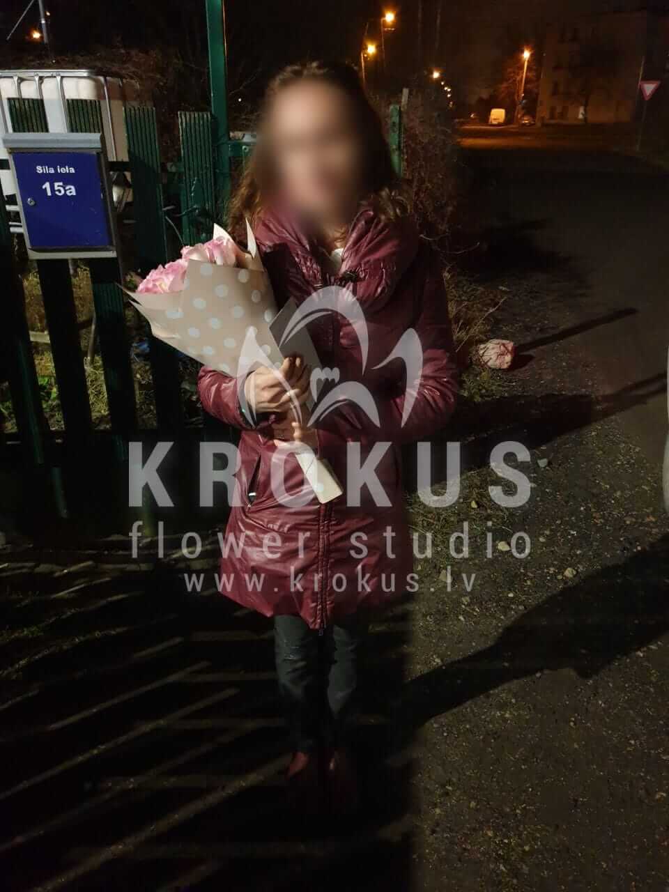 Mēs piegādājām vēl vienu pasūtījumu uz pilsētu Rīga. Pasūtītājs vēlējās: Ziedu piegāde Rozā rozes 50cm