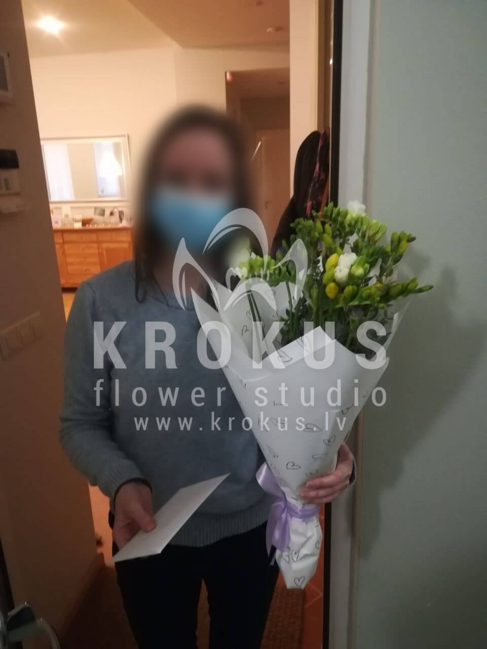 Mēs piegādājām vēl vienu pasūtījumu uz pilsētu Rīga. Pasūtītājs vēlējās: Ziedu piegāde Frēzijas (Attēlam fotogrāfijā ir ilustratīvs raksturs. Ja Jums ir svarīgi saņemt frēzijas noteiktā gatavības stadijā, lūdzam sazināties ar mums pirms veicat pasūtījumu.)
