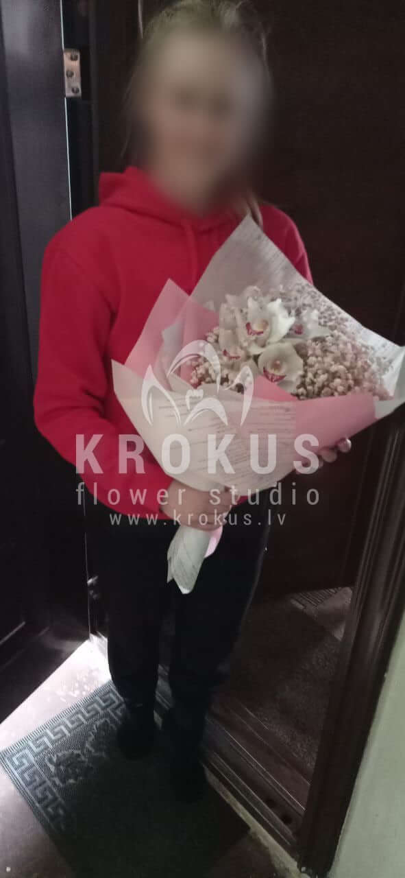 Ziedu sastāvā: Gypsophila (Ģipsene), Orhidejas.