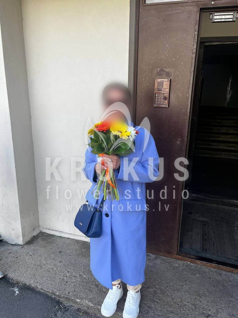 Ziedu sastāvā: Gerberas, Salal (Goltjēra).