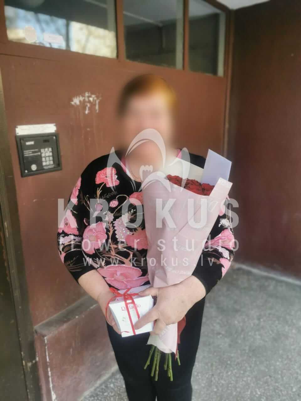 Mēs piegādājām vēl vienu pasūtījumu uz pilsētu Rīga. Pasūtītājs vēlējās: Ziedu piegāde Sarkanas rozes 70сm. Ziedu piegāde Raffaello 150g (Konfektes RAFFAELLO, 150g