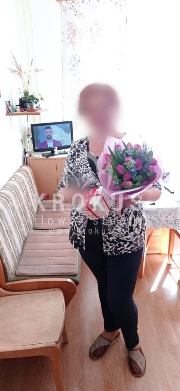 Mēs piegādājām vēl vienu pasūtījumu uz pilsētu Rīga. Pasūtītājs vēlējās: Ziedu piegāde Pildītās tulpes ar neaizmirstulītēm. Ziedu piegāde Raffaello 150g (Konfektes RAFFAELLO, 150g