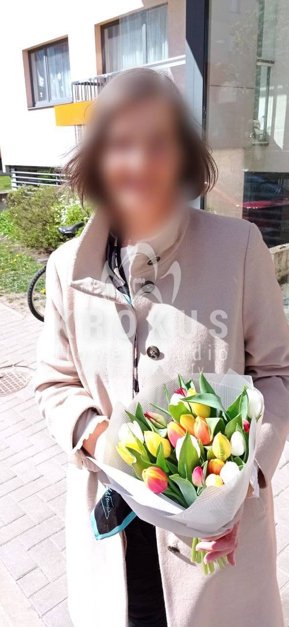 Mēs piegādājām vēl vienu pasūtījumu uz pilsētu Rīga. Pasūtītājs vēlējās: Ziedu piegāde Krāsainu tulpju pušķis