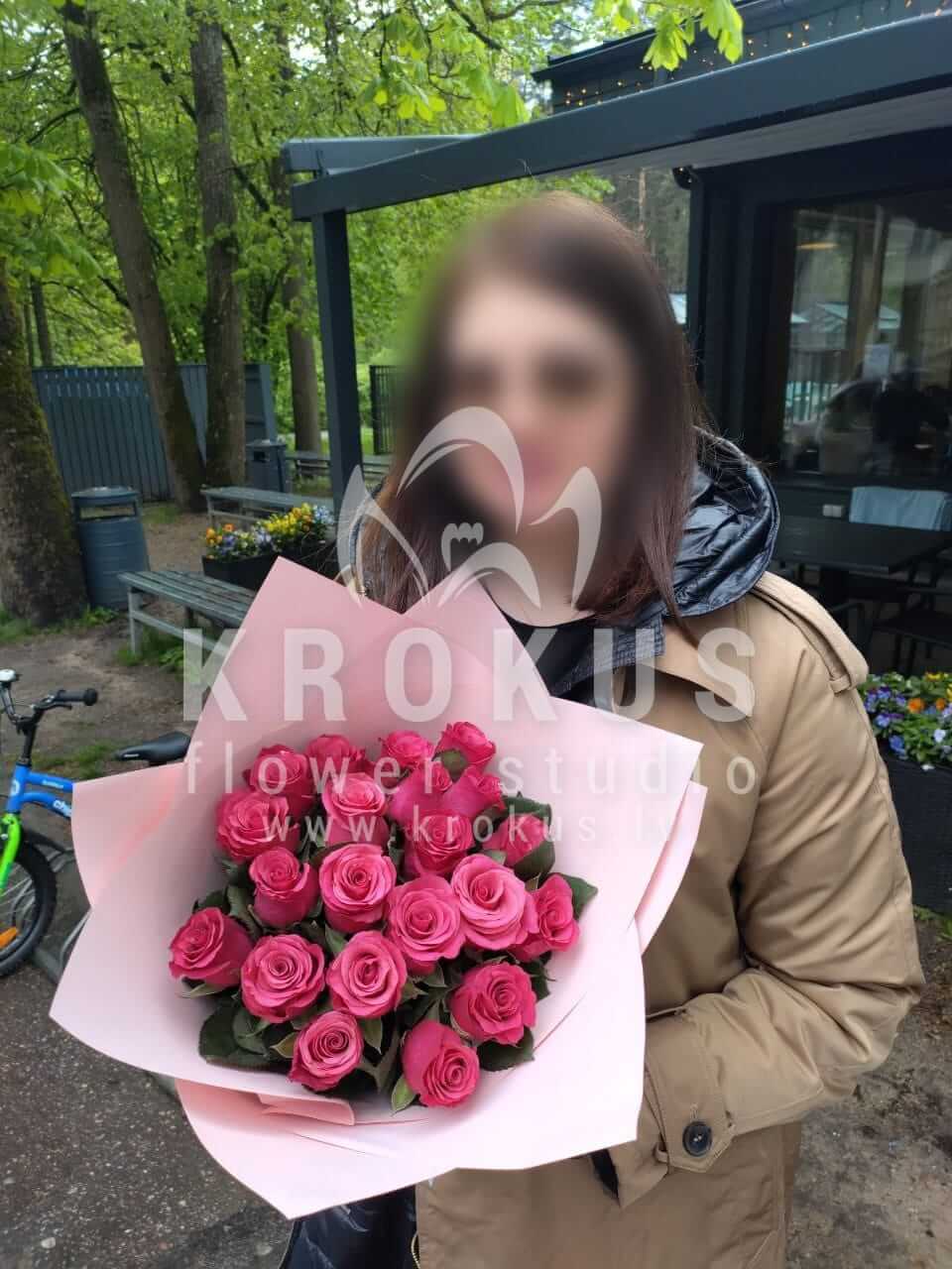 Mēs piegādājām vēl vienu pasūtījumu uz pilsētu Rīga. Pasūtītājs vēlējās: Ziedu piegāde Aveņkrāsas rozes 50см