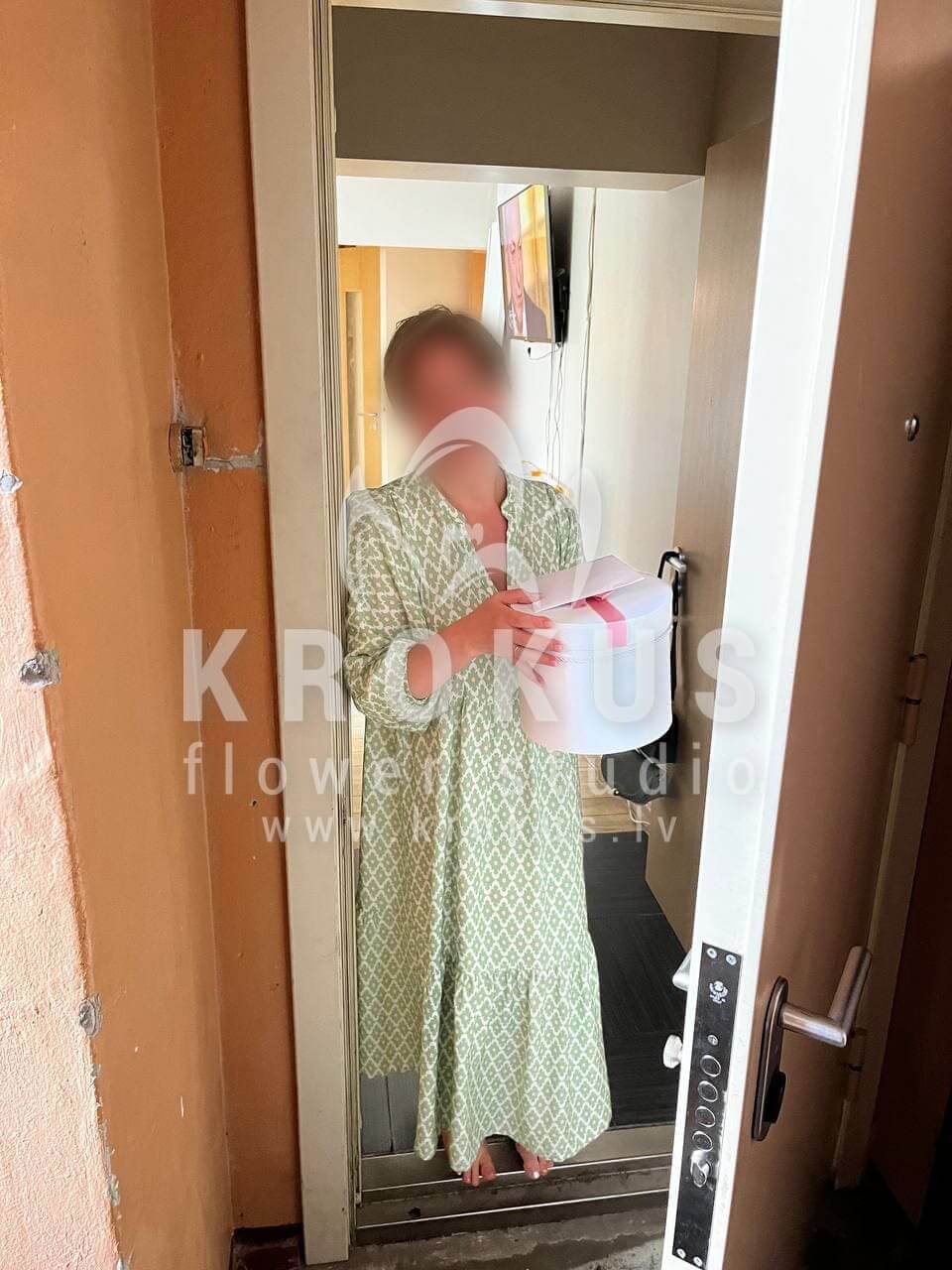 Mēs piegādājām vēl vienu pasūtījumu uz pilsētu Rīga. Pasūtītājs vēlējās: Ziedu piegāde Flowerbox ar macarooniem (Izmērs: