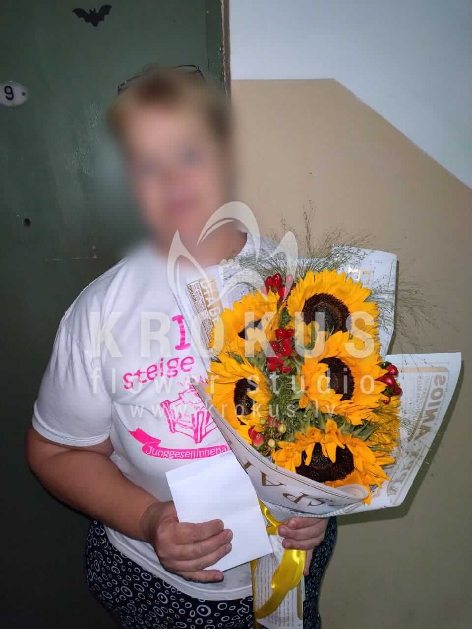 Mēs piegādājām vēl vienu pasūtījumu uz pilsētu Rīga. Pasūtītājs vēlējās: Ziedu piegāde Pušķis no saulespuķēm (Pušķa sastāvs var nedaudz atšķirties no attēlā redzamā, atkarībā no sezonas!)