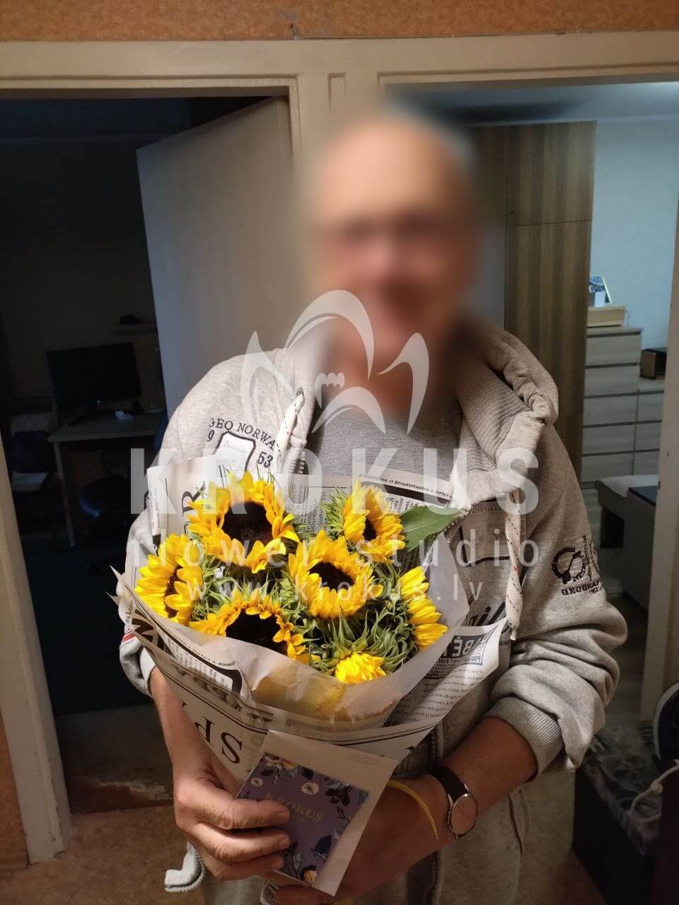 Mēs piegādājām vēl vienu pasūtījumu uz pilsētu Rīga. Pasūtītājs vēlējās: Ziedu piegāde Saulespuķes