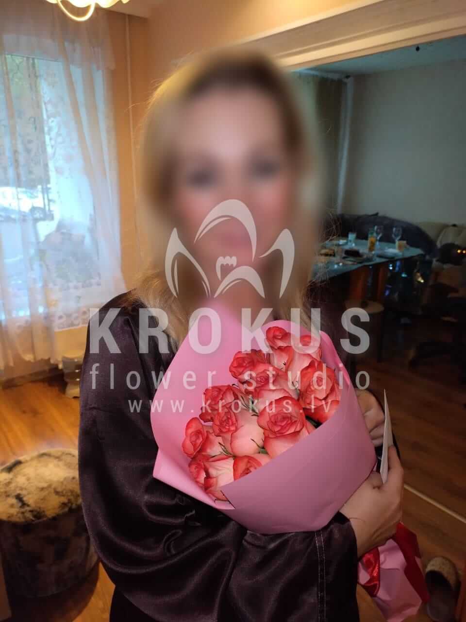 Mēs piegādājām vēl vienu pasūtījumu uz pilsētu Rīga. Pasūtītājs vēlējās: Ziedu piegāde Aveņkrāsas rozes