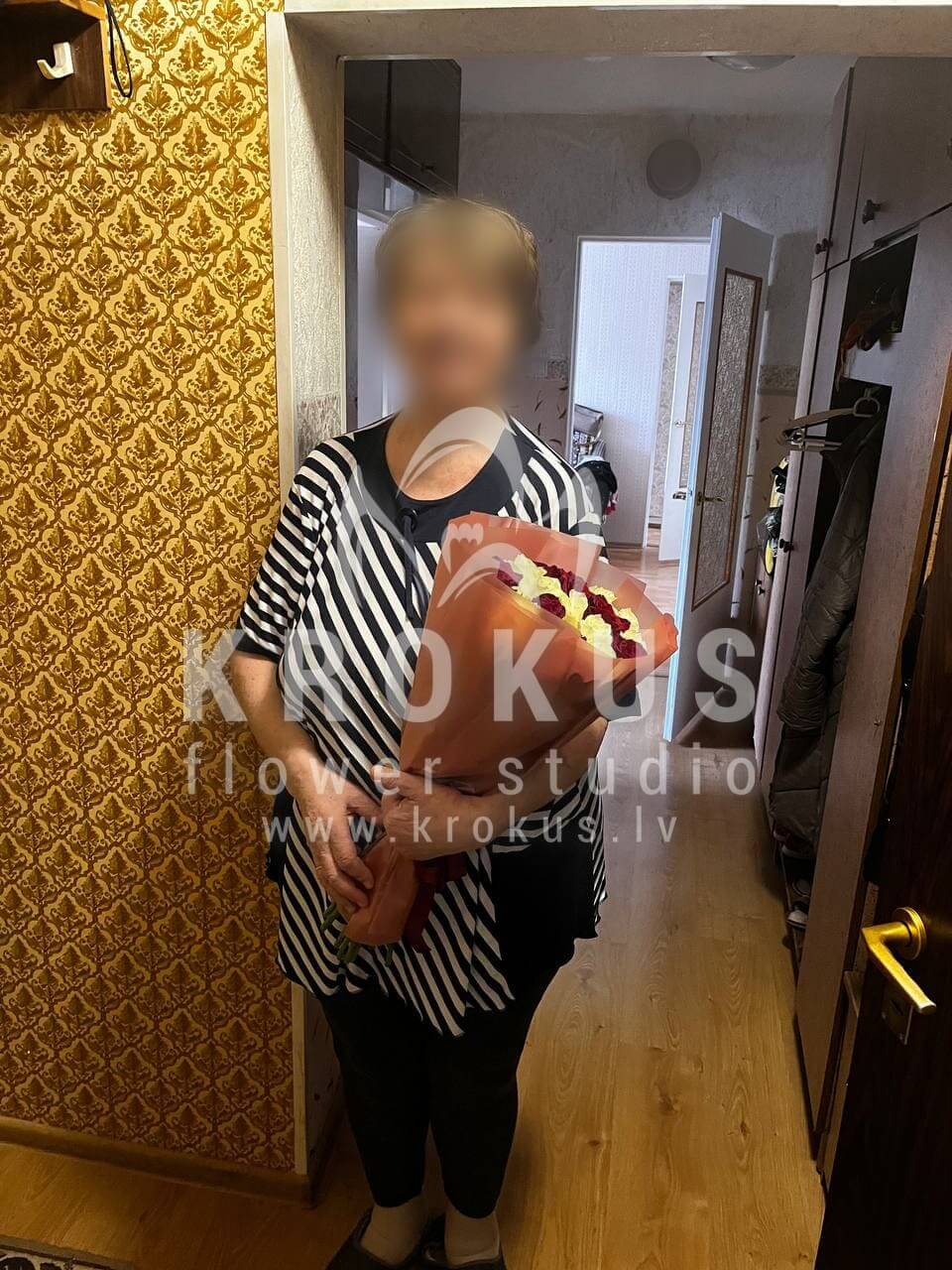 Mēs piegādājām vēl vienu pasūtījumu uz pilsētu Rīga. Pasūtītājs vēlējās: Ziedu piegāde DIVKRĀSAINO ROŽU PUŠĶIS 50cm