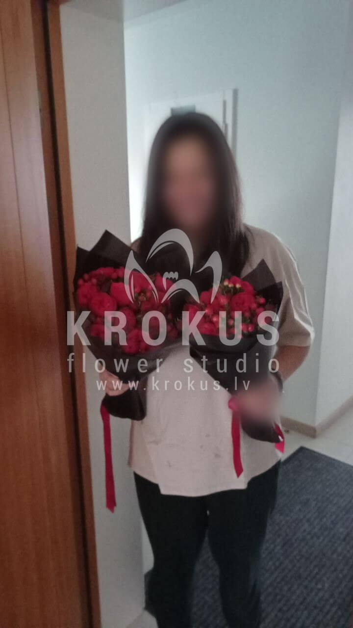 Mēs piegādājām vēl vienu pasūtījumu uz pilsētu Rīga. Pasūtītājs vēlējās: Ziedu piegāde Peonijveida rozes ar ogām. Ziedu piegāde Peonijveida rozes ar ogām