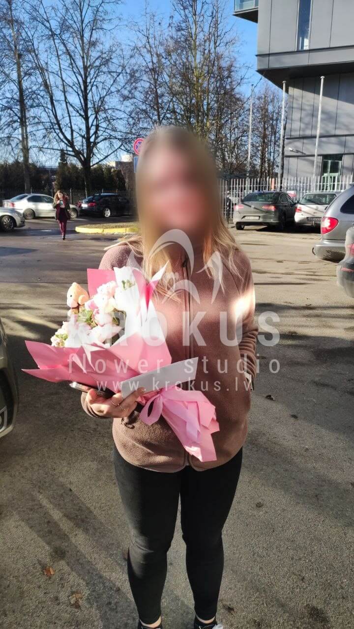 Mēs piegādājām vēl vienu pasūtījumu uz pilsētu Rīga. Pasūtītājs vēlējās: Ziedu piegāde Peonijveidīgas rozes ar neaizmirstulītēm