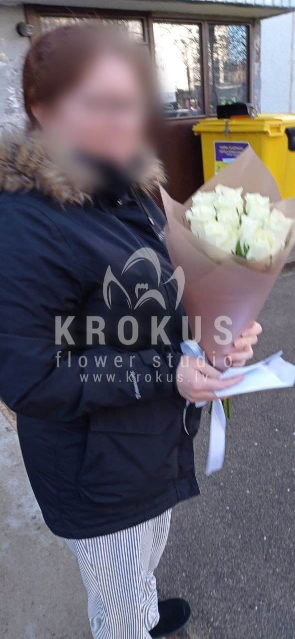 Mēs piegādājām vēl vienu pasūtījumu uz pilsētu Rīga. Pasūtītājs vēlējās: Ziedu piegāde Baltas rozes 40cm