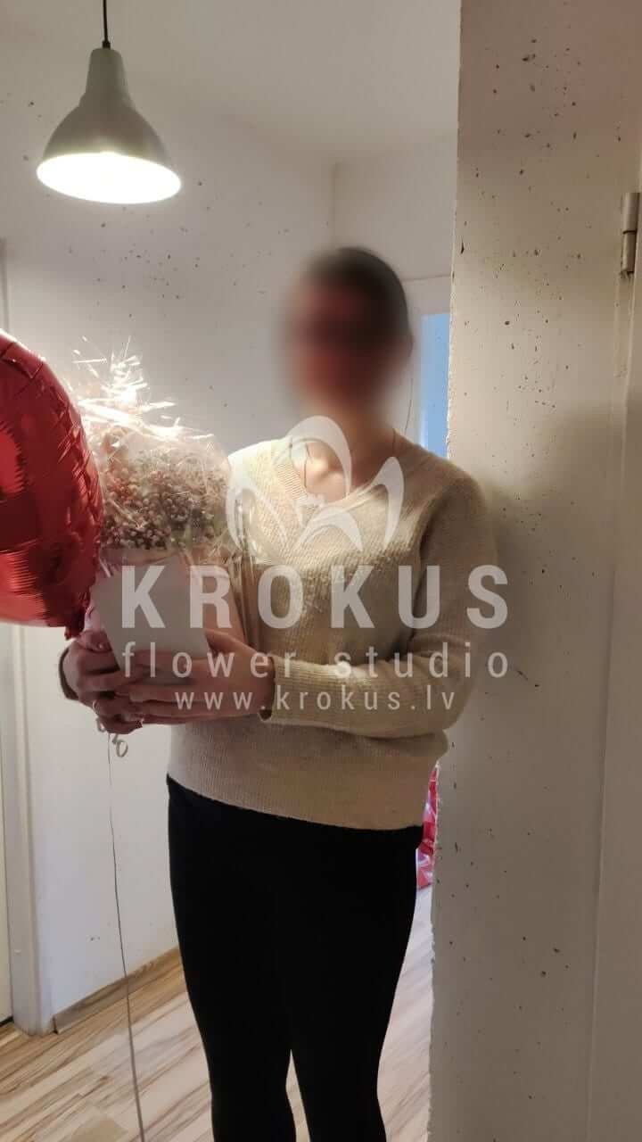 Mēs piegādājām vēl vienu pasūtījumu uz pilsētu Rīga. Pasūtītājs vēlējās: Ziedu piegāde Kaste ar gipsofilām (Fotogrāfijai ir ilustratīvs nolūks. Kastes krāsa var atšķirties.). Ziedu piegāde Folija Balons sirds 18x45cm