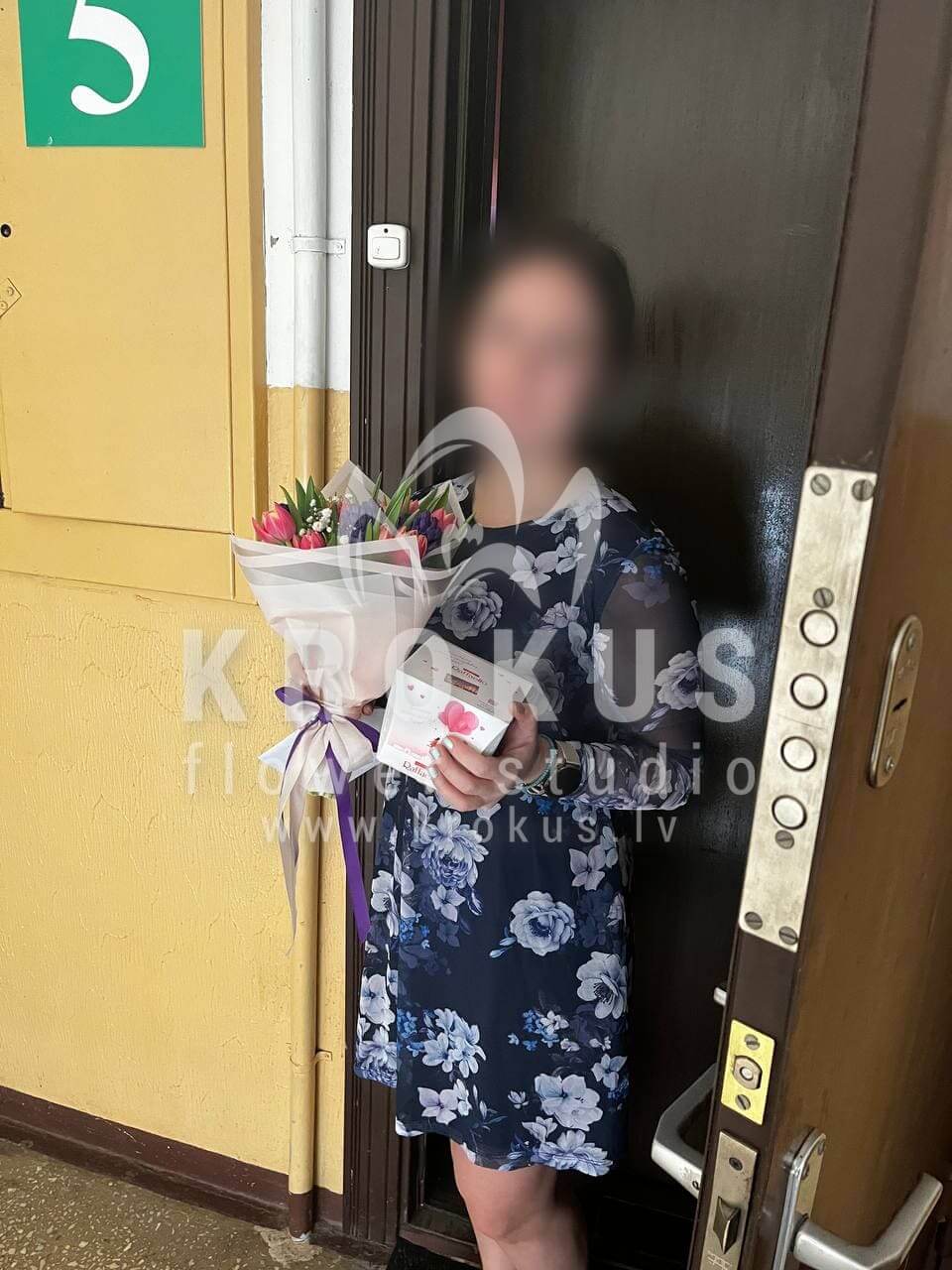 Mēs piegādājām vēl vienu pasūtījumu uz pilsētu Rīga. Pasūtītājs vēlējās: Ziedu piegāde Pavasara pušķis. Ziedu piegāde Raffaello 150g (Konfektes RAFFAELLO, 150g