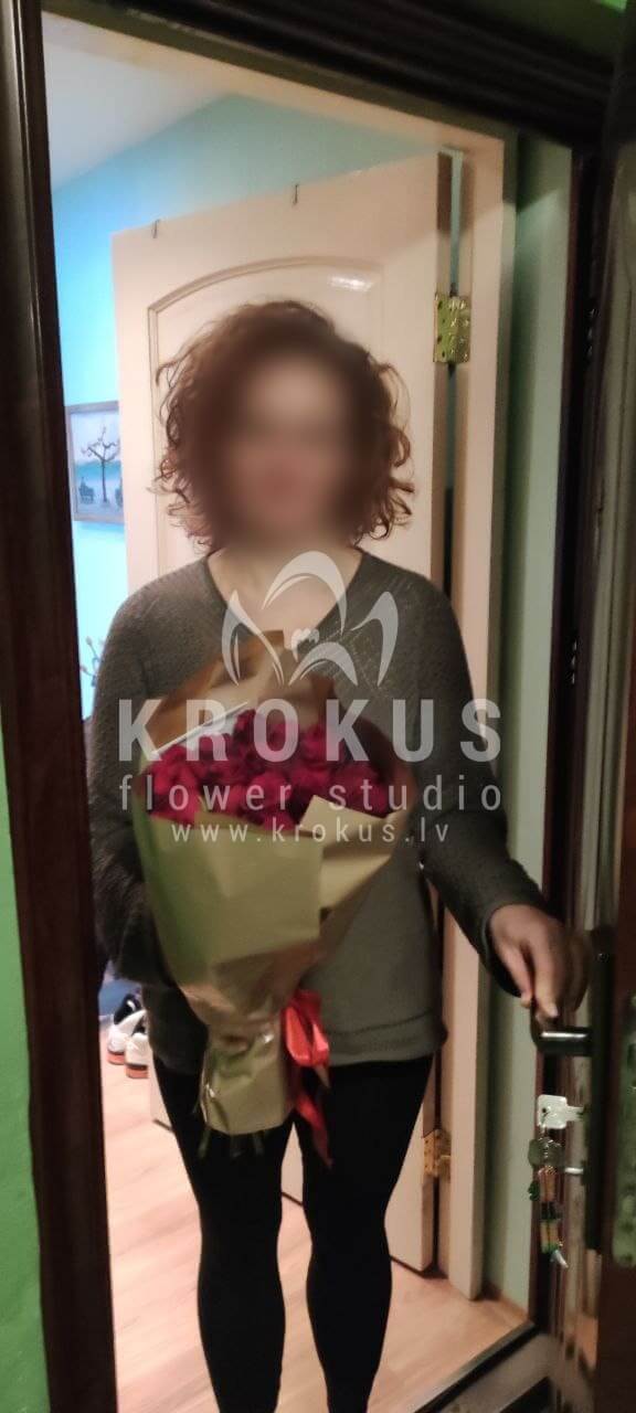 Mēs piegādājām vēl vienu pasūtījumu uz pilsētu Rīga. Pasūtītājs vēlējās: Ziedu piegāde Sarkanas rozes XXL 80cm