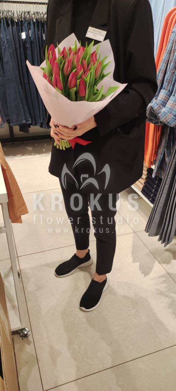 Mēs piegādājām vēl vienu pasūtījumu uz pilsētu Rīga. Pasūtītājs vēlējās: Ziedu piegāde Sarkanas tulpes. Ziedu piegāde Raffaello 150g (Konfektes RAFFAELLO, 150g