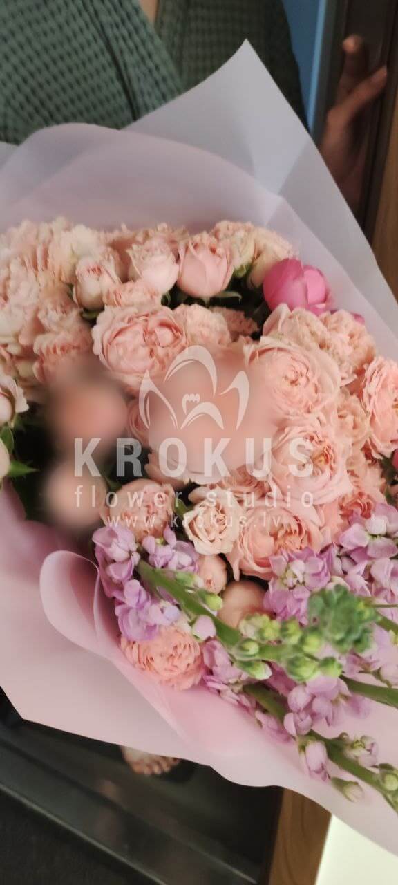 Ziedu sastāvā: Hortenzijas, Peonveidīgās rozes, Krūmrozes, Rozā rozes, Lizantes.