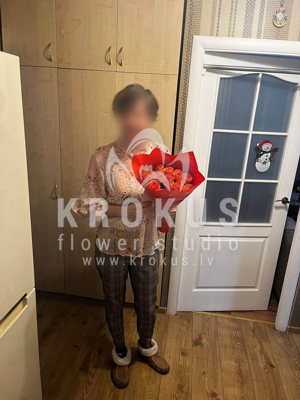 Mēs piegādājām vēl vienu pasūtījumu uz pilsētu Rīga. Pasūtītājs vēlējās: Ziedu piegāde pušķis ICON rozes