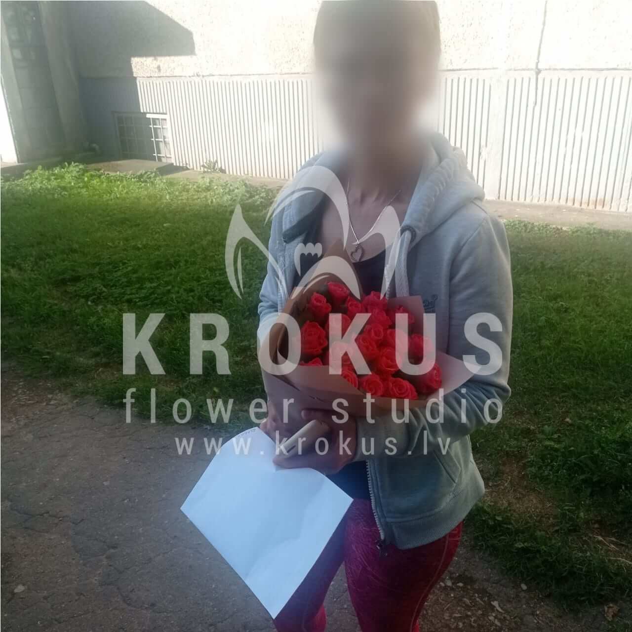 Mēs piegādājām vēl vienu pasūtījumu uz pilsētu Rīga. Pasūtītājs vēlējās: Ziedu piegāde Aveņkrāsas rozes 40cm
