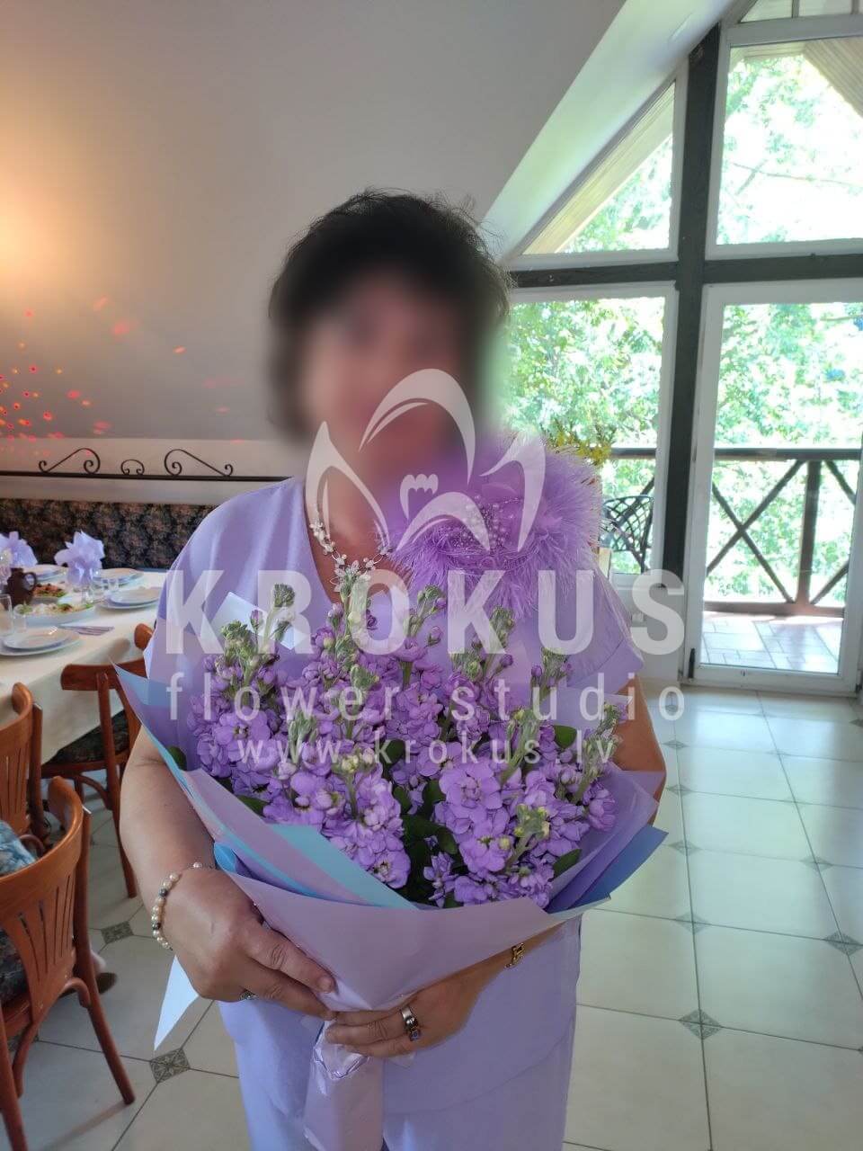 Mēs piegādājām vēl vienu pasūtījumu uz pilsētu Rīga. Pasūtītājs vēlējās: Ziedu piegāde Aromātisks pušķis no lefkojas