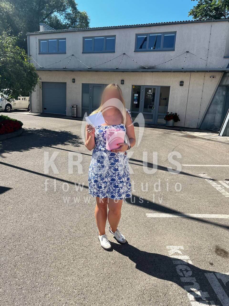 Mēs piegādājām vēl vienu pasūtījumu uz pilsētu Rīga. Pasūtītājs vēlējās: Ziedu piegāde Flowerbox ar macarooniem (Izmērs: