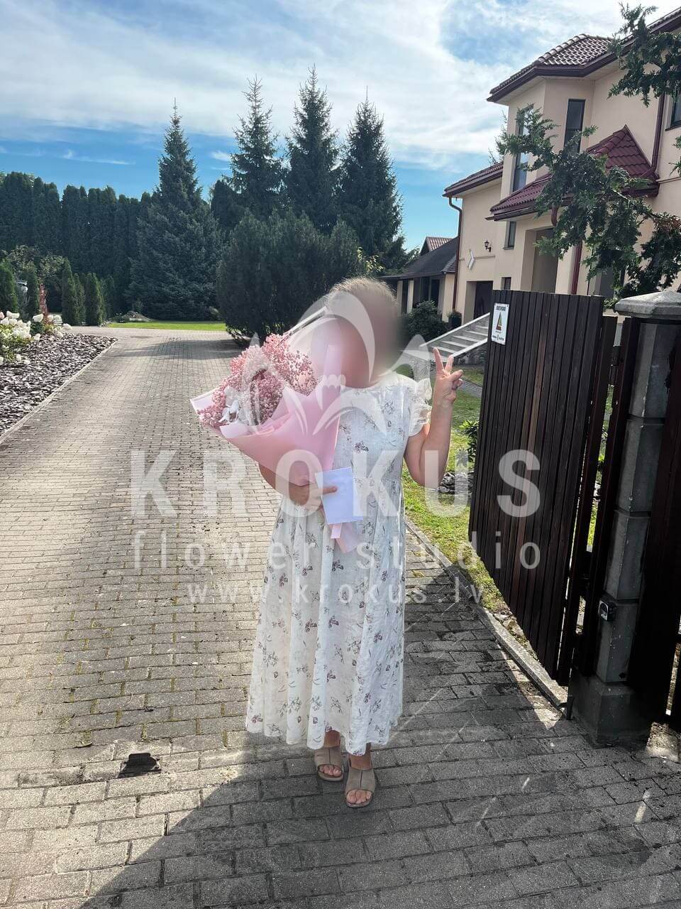Ziedu sastāvā: Gypsophila (Ģipsene), Orhidejas.
