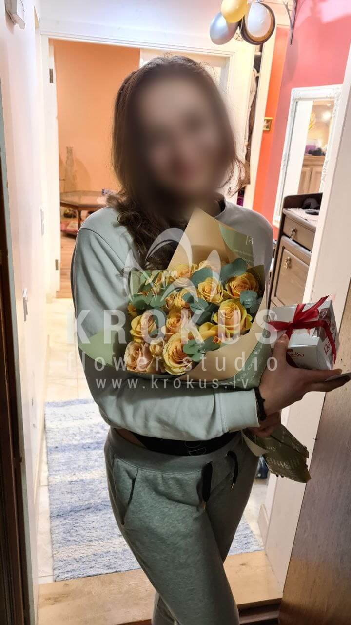 Mēs piegādājām vēl vienu pasūtījumu uz pilsētu Salaspils. Pasūtītājs vēlējās: Ziedu piegāde Рersiku krāsas rozes. Ziedu piegāde Raffaello 150g (Konfektes RAFFAELLO, 150g