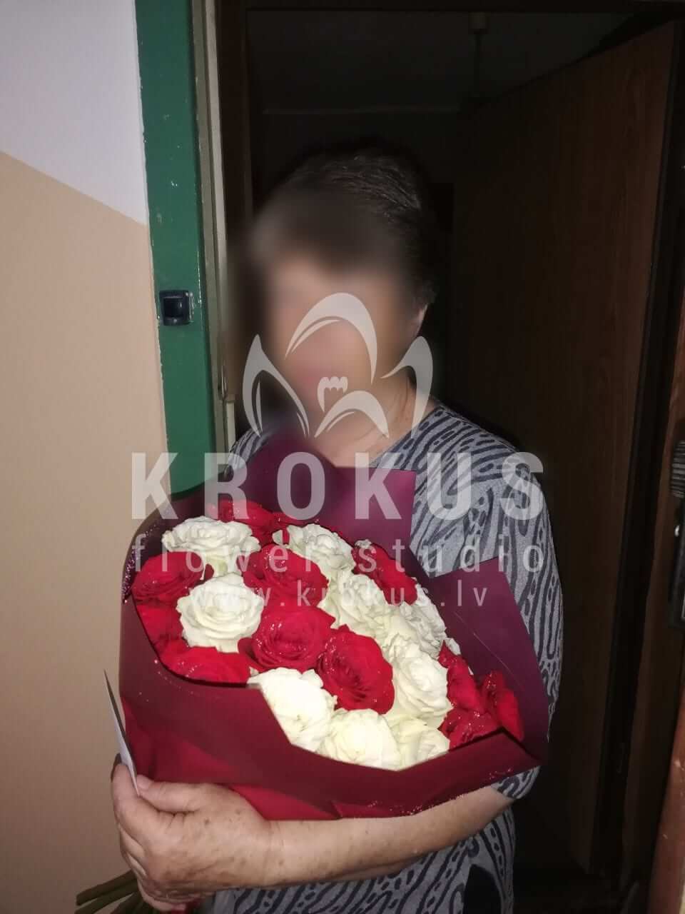 Ziedu sastāvā: Baltas rozes, Sarkanas rozes.
