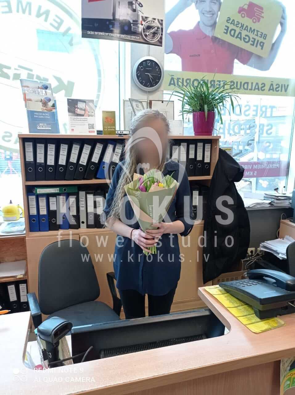 Mēs piegādājām vēl vienu pasūtījumu uz pilsētu Saldus. Pasūtītājs vēlējās: Ziedu piegāde Krāsainu tulpju pušķis
