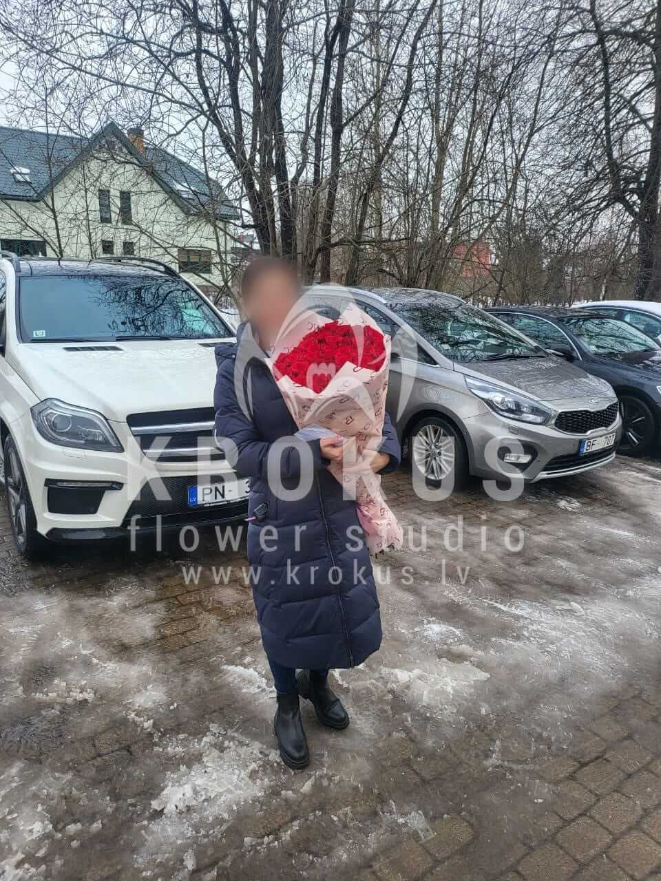 Mēs piegādājām vēl vienu pasūtījumu uz pilsētu Sigulda. Pasūtītājs vēlējās: Ziedu piegāde Sarkanas rozes 70cm XXL