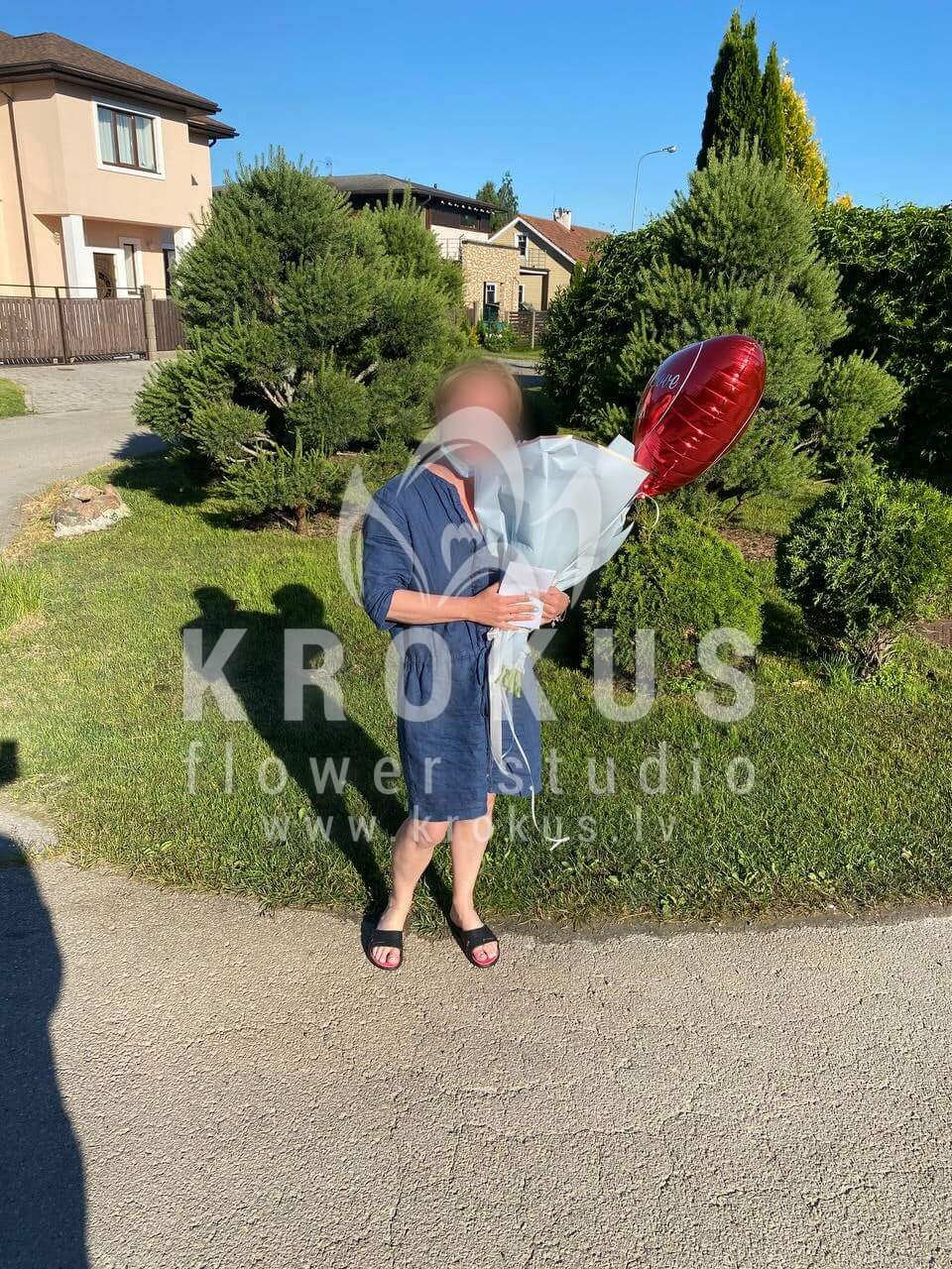 Mēs piegādājām vēl vienu pasūtījumu uz pilsētu Spilve. Pasūtītājs vēlējās: Ziedu piegāde Krēmkrāsas peonijas. Ziedu piegāde Folija Balons sirds 18x45cm
