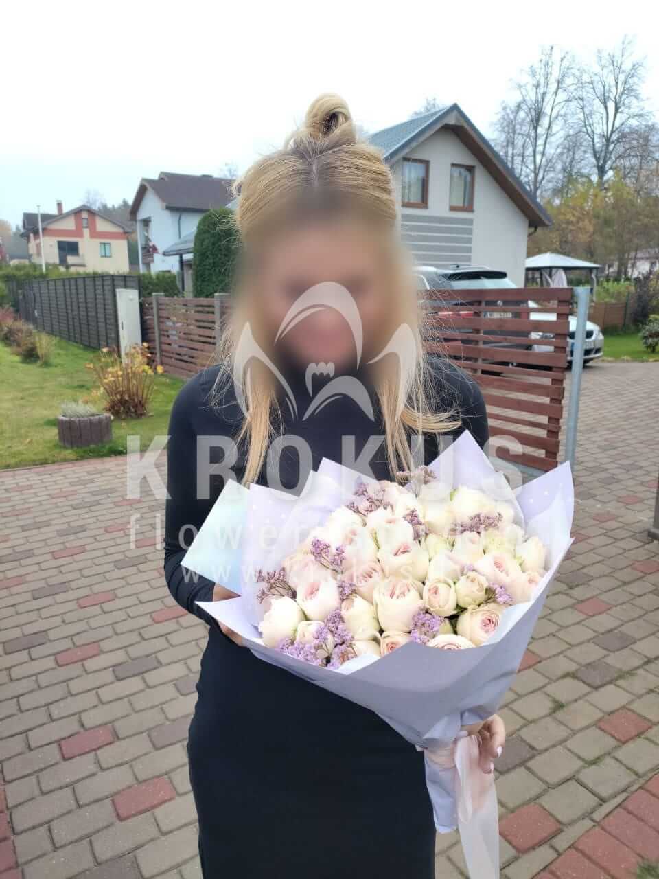 Mēs piegādājām vēl vienu pasūtījumu uz pilsētu Spilve. Pasūtītājs vēlējās: Ziedu piegāde Peonijveidīgas rozes ar neaizmirstulītēm