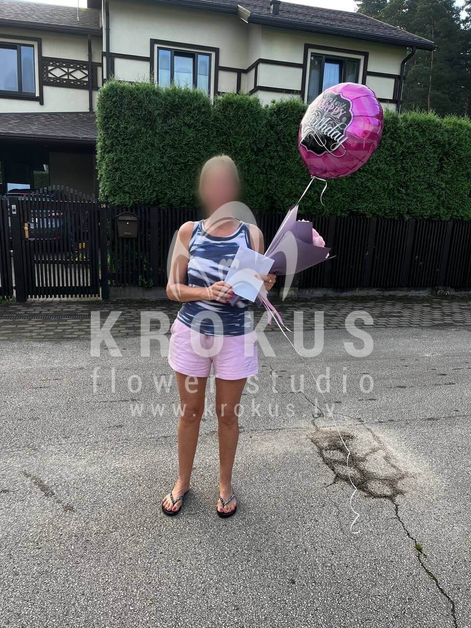 Mēs piegādājām vēl vienu pasūtījumu uz pilsētu Spilve. Pasūtītājs vēlējās: Ziedu piegāde Rozā rozes 50cm. Ziedu piegāde Folija Balons Skūpsts 30cm