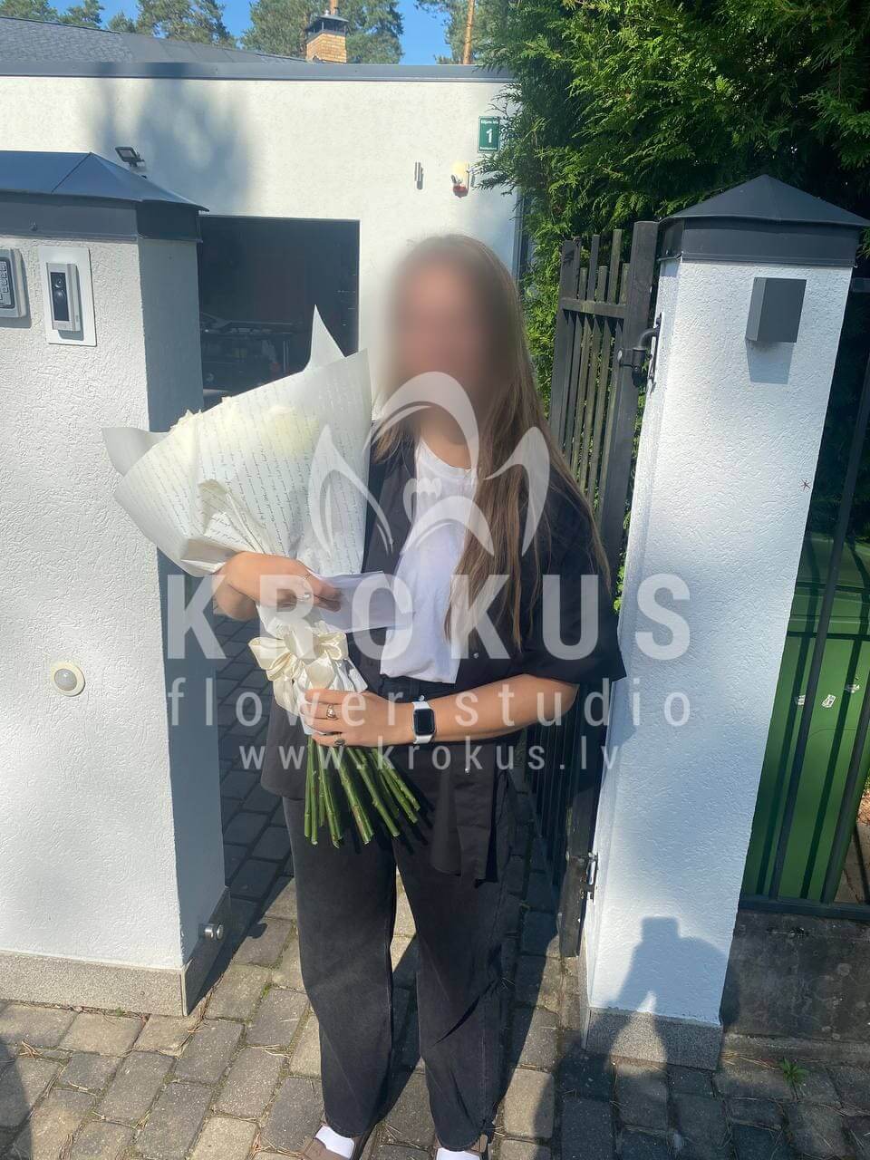 Mēs piegādājām vēl vienu pasūtījumu uz pilsētu Sunīši. Pasūtītājs vēlējās: Ziedu piegāde Baltas rozes XXL 50cm