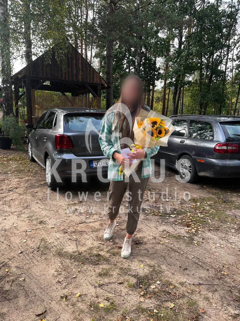 Mēs piegādājām vēl vienu pasūtījumu uz pilsētu Upesciems. Pasūtītājs vēlējās: Ziedu piegāde Pušķis no saulespuķēm (Pušķa sastāvs var nedaudz atšķirties no attēlā redzamā, atkarībā no sezonas!)